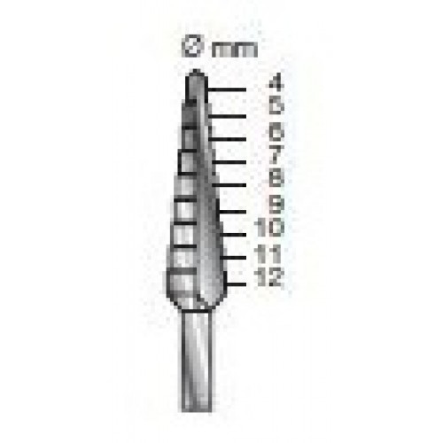 FRESAS ESCALONADAS ITALIANAS DE VARIAS MEDIDAS, EL PRECIO CORRESPONDE A UNA QUE VA DE 4 MM A12 MM. PRECIO IVA INCLUIDO